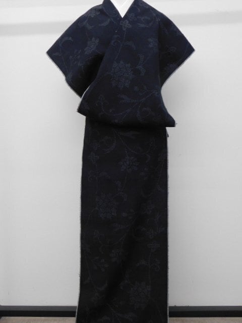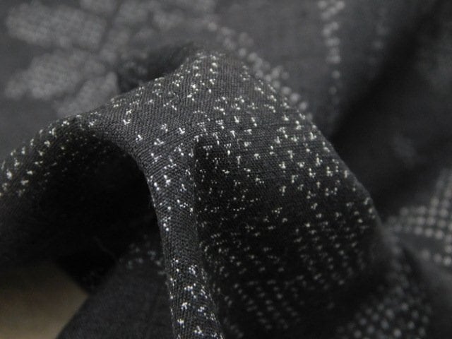 重要無形文化財 本場 結城紬 墨黒地 蚊絣 証紙付き 仕立て付き解き洗い品 P33091 c